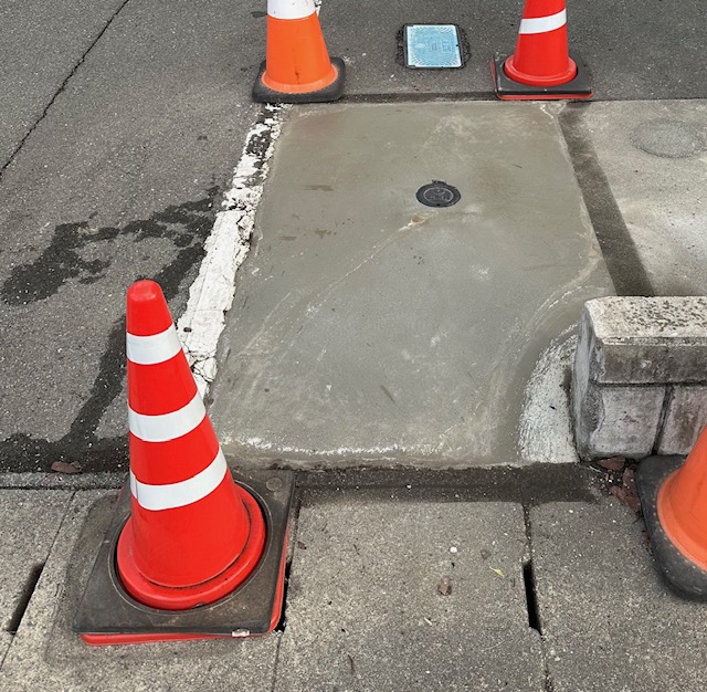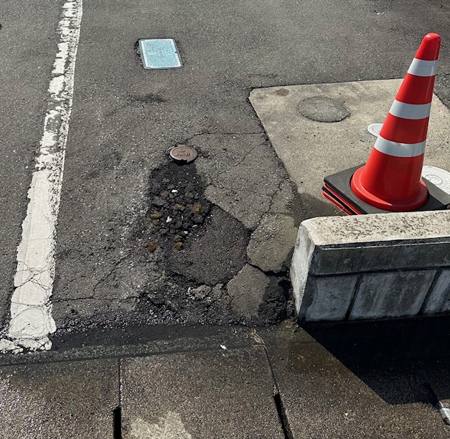 アスファルトが割れております